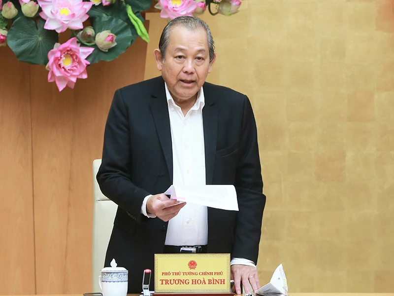 Phó Thủ tướng thường trực Trương Hòa Bình phát biểu tại cuộc họp. Ảnh: plo.vn