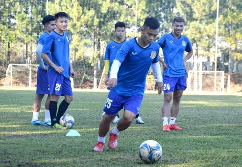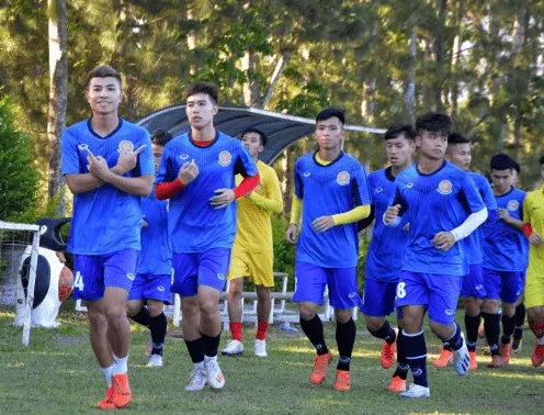 Đinh Thanh Bình và các cầu thủ tập luyện trong màu áo CLB Công an nhân dân. ẢNH: ANH VỸ