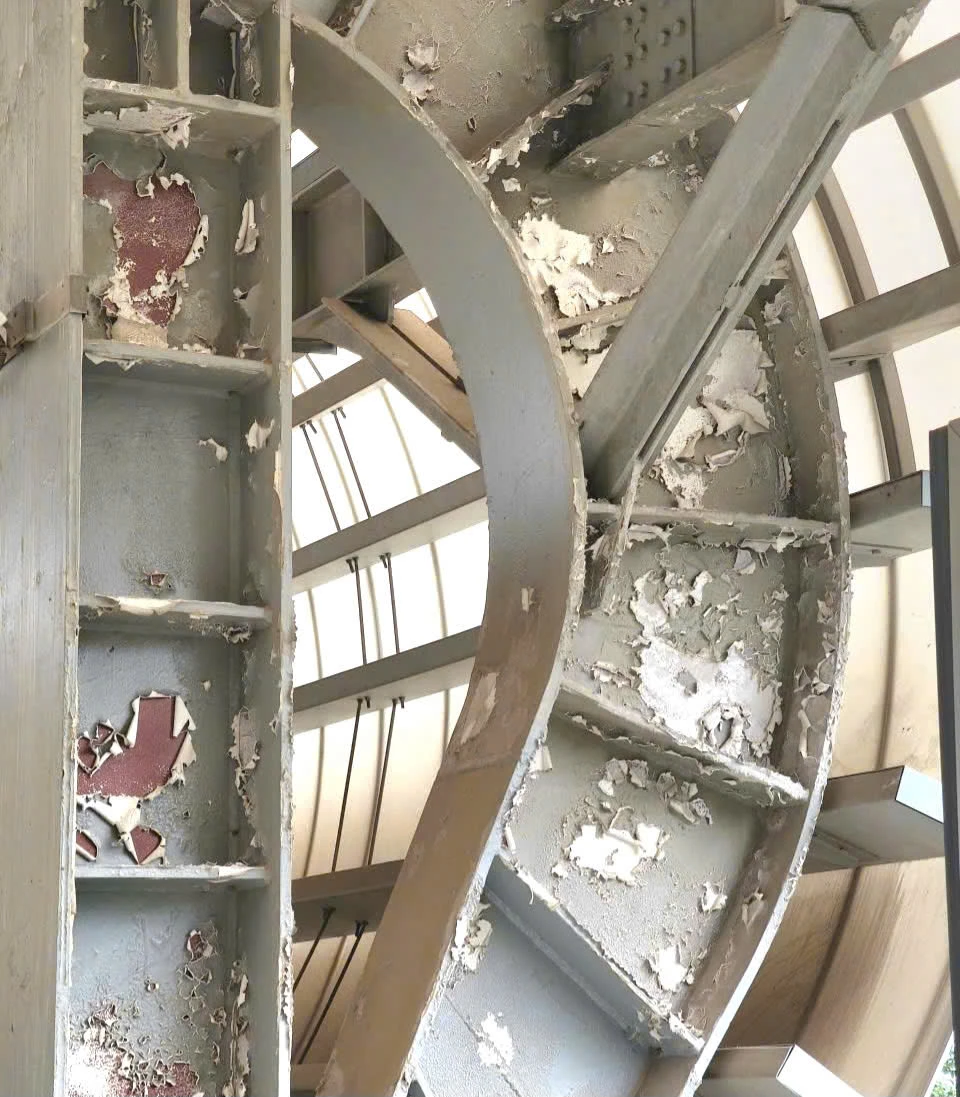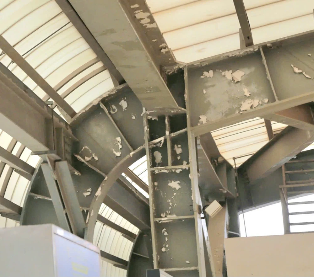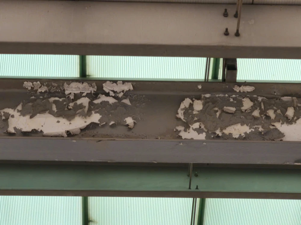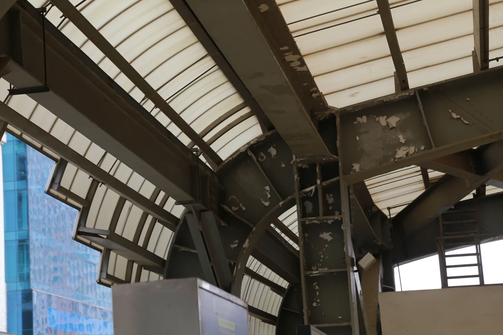 Hình ảnh lớp sơn mái che nhà ga Hà Đông bị bong tróc. Ảnh: V.LONG