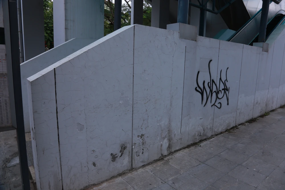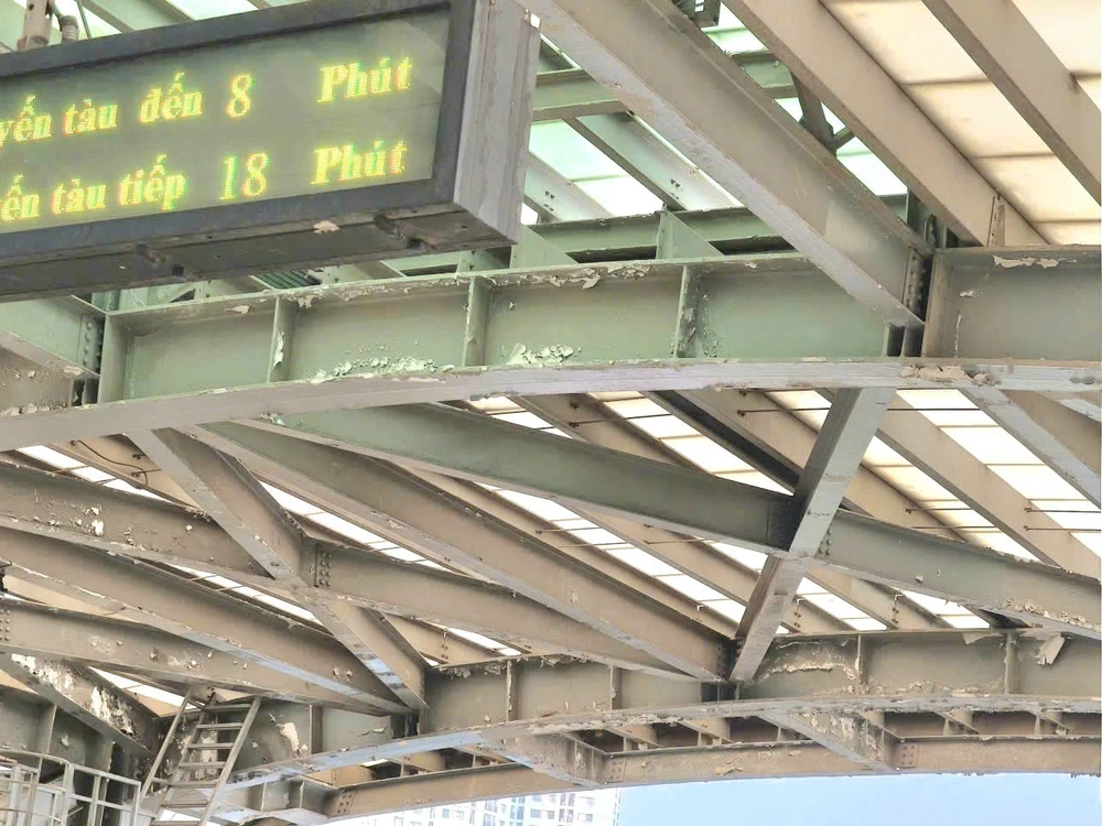 Đáng chú ý, một số nhà ga, mảng sơn trên mái bị bong rơi xuống khu vực bên dưới. Vị trí thang cuốn lên nhà ga xuất hiện các vết vẽ bẩn, loang lổ. Dù không ảnh hưởng trực tiếp đến vận hành tàu nhưng hình ảnh này phần nào gây mất mỹ quan và lo ngại cho hành khách đi tàu.