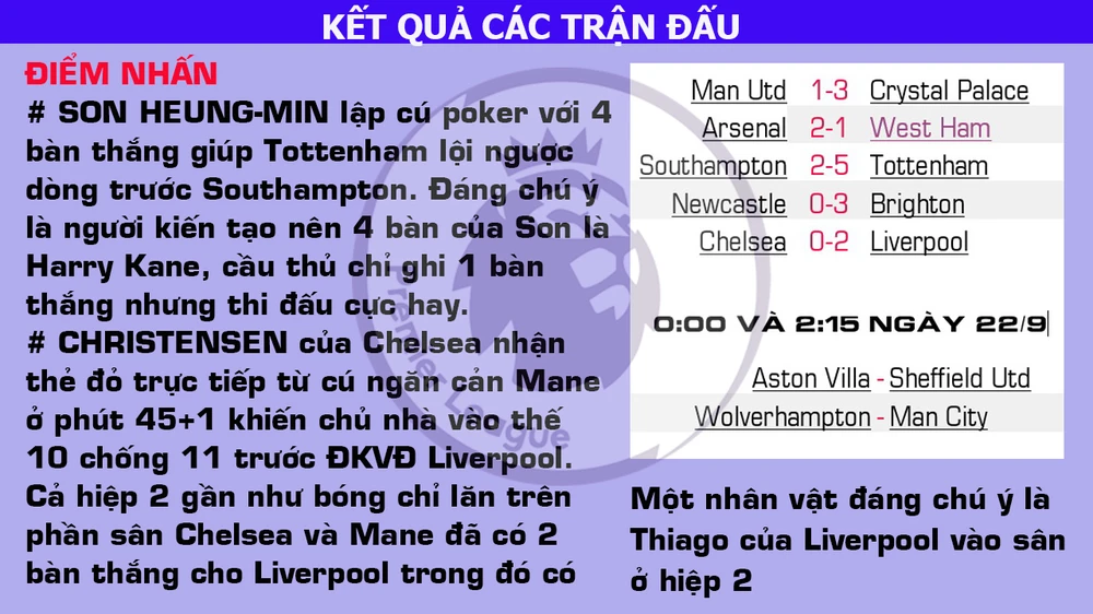 Trận đấu được mong đợi nhất vòng 2 là Chelsea – Liverpool chỉ cân tài ngang sức ở hiệp 1 khi hai bên còn đủ người. Chiếc thẻ đỏ tai hại của Christensen ở phút 45+1 khiến chủ nhà Chelsea vào thế 10 chống 11.