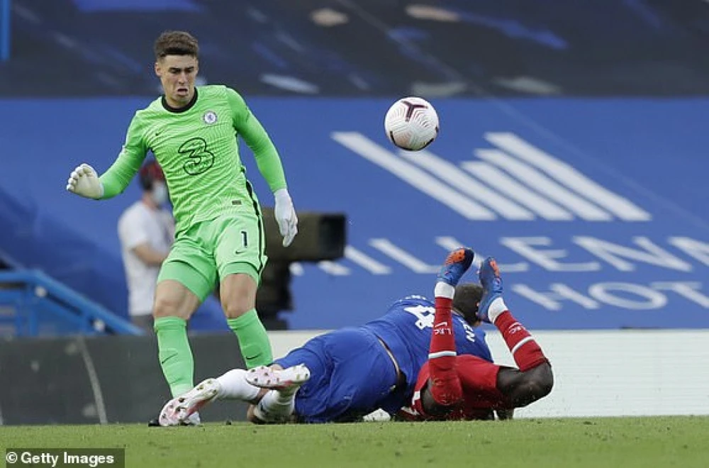 Thủ môn Kepa phạm sai lầm ngớ ngẩn biếu không cho Liverpool bàn thắng dù đội nhà chơi thiếu người và thua trước một bàn. Ảnh: GETTY IMAGES