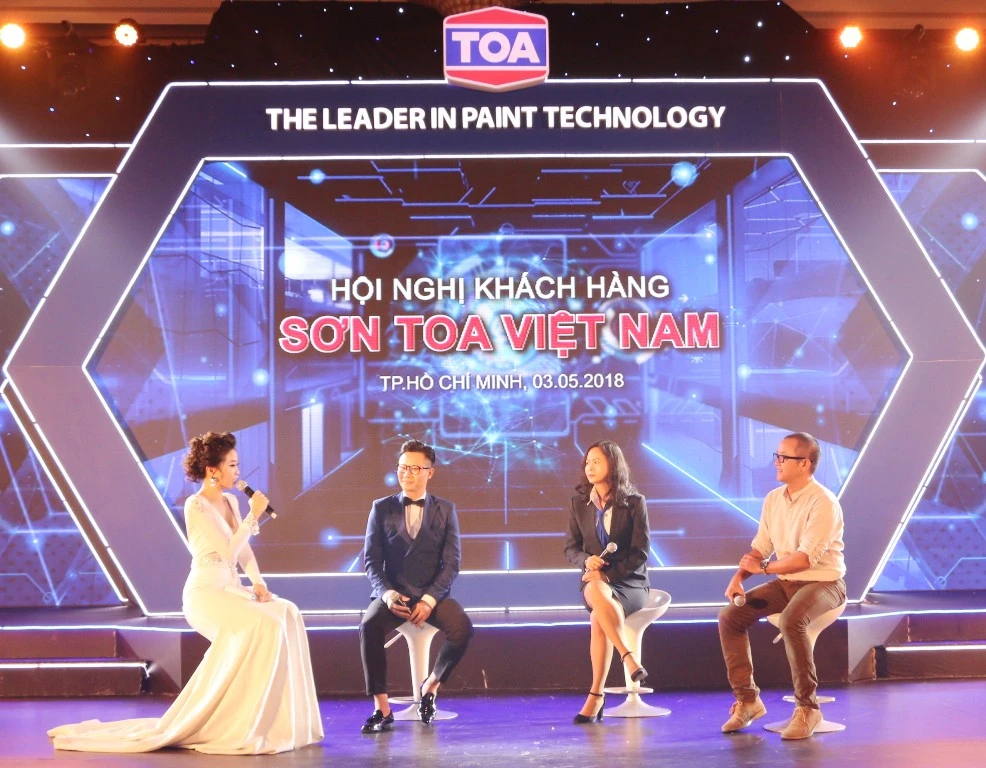 Tọa đàm giữa đại diện sơn TOA, ca sĩ Hoàng Bách và KTS Phạm Thanh Truyền về giải pháp sơn phủ cho người tiêu dùng.