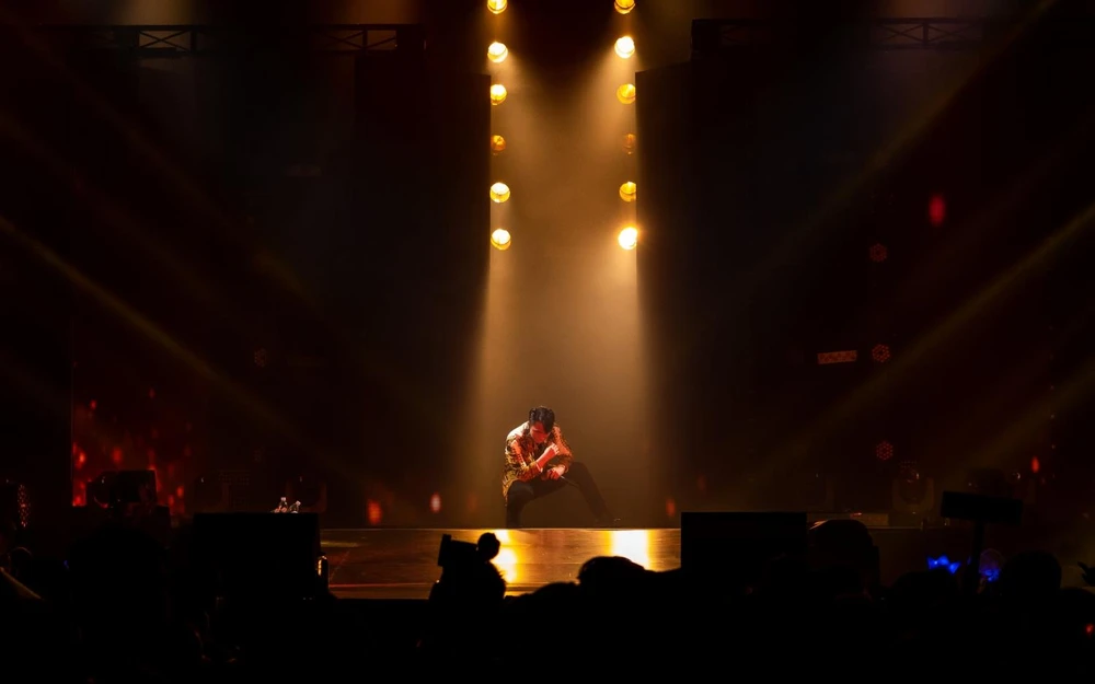 Sau những phần trình diễn từ các nghệ sĩ khách mời, Sơn Tùng M-TP xuất hiện trên sân khấu Sky tour tại TP Đà Nẵng với hình ảnh hoàn toàn mới. Không còn để kiểu tóc chải ngược quen thuộc, nam ca sĩ rũ tóc mái, mặc áo sát nách vừa cá tính, trẻ trung. Sơn Tùng M-TP khiến hàng nghìn người hâm mộ phấn khích khi thể hiện những bước nhảy ngẫu hứng, mở màn cho tiết mục Chạy ngay đi được dàn dựng hoành tráng, giữa ánh đèn đầy cuốn hút.