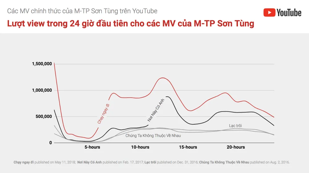 Tối 17-5, METUB Network - đơn vị đồng hành cùng M-TP Entertainment trong phát hành và quảng bá các MV của Sơn Tùng M-TP trên YouTube đã đưa ra thông báo Google đã có xác nhận Sơn Tùng M-TP là nghệ sĩ Việt đầu tiên phá vỡ các kỷ lục trên YouTube với MV Chạy ngay đi.