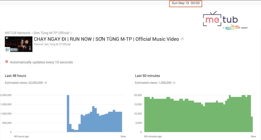Báo cáo lượt xem Thơi gian thực ghi nhận lúc 0 giờ ngày 13-5.