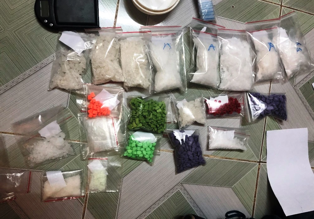 Khám xét nơi ở của Linh, công an phát hiện 690 viên thuốc lắc, 130 viên hồng phiến, gần 3 kg ma túy đá, 300g ketamin.