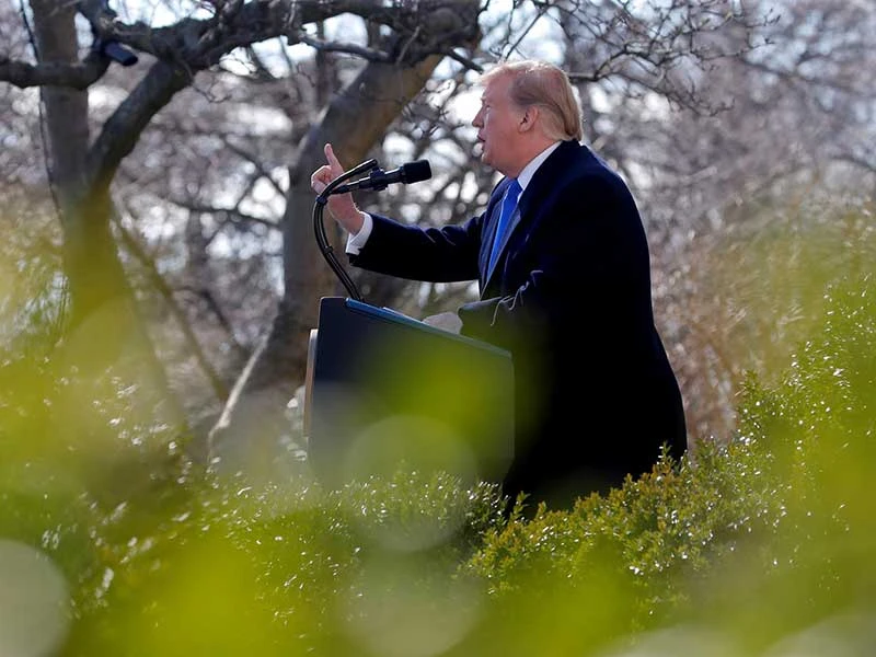Tổng thống Mỹ Donald Trump phát biểu tại Nhà Trắng ngày 15-2, tuyên bố tình trạng khẩn cấp quốc gia. Ảnh: REUTERS