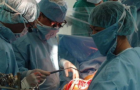 Các bác sĩ BV Trung ương Huế tiến hành ghép tim nhân tạo bán phần. (Ảnh do GS-TS Bùi Đức Phú cung cấp)