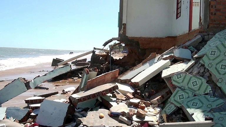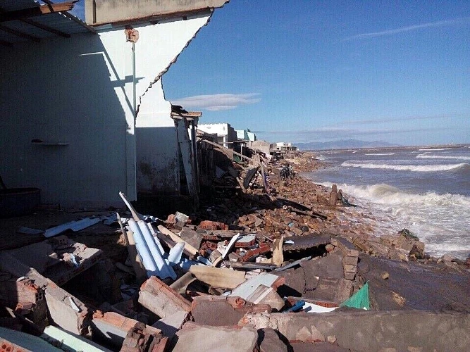 Tại thị trấn Liên Hương, huyện Tuy Phong, biển xâm thực đã làm hư hại nhà cửa cùng với tài sản của 25 hộ dân sống ven biển, ước tính thiệt hại hơn 3 tỉ đồng.
