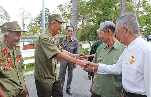 Ngày gặp lại, các cựu chiến binh trao nhau những cái siết tay thật chặt để cùng nhau nhớ lại quá khứ hào hùng. Ảnh: GIA TUỆ