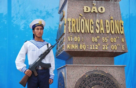 Bước chân lên đảo nào, hình ảnh đầu tiên luôn đập vào mắt những người đất liền là tấm bia chủ quyền hiên ngang, vững chãi. Tấm bia đứng đó, được canh gác đêm ngày bởi những người lính hải quân nhân dân Việt Nam, luôn chắc tay súng, mắt dõi nhìn ra phía biển với sự cảnh giác cao độ. Họ luôn tâm niệm dù bản thân có ngã xuống thì cũng quyết không bao giờ để mất tấm bia chủ quyền thiêng liêng ấy.
