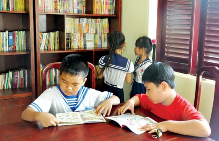 Đọc sách trong thư viện của ngôi trường mới. Ảnh: MINH PHONG