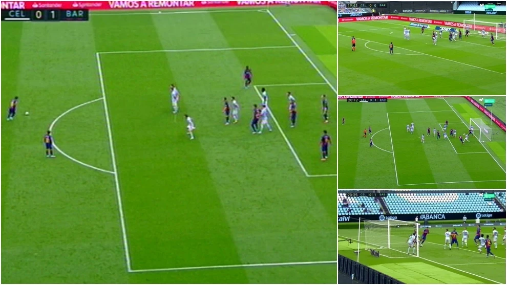 Ở tình huống này, các cầu thủ Celta Vigo đều nghĩ Messi sẽ sút thẳng nên đã chuẩn bị hàng rào rất kỹ. Thậm chí có 2 cầu thủ Celta Vigo lùi về trước khung thành sẵn sàng giải vây nếu như thủ thành Ruben bất lực. Tuy nhiên, Messi đã gây ngỡ ngàng bằng các kiến tạo cho Suarez chứ không dứt điểm.
