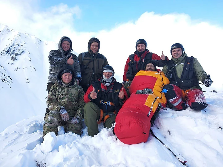 Đội cứu hộ đã tiếp cận và cứu được nạn nhân Novoseltsev (quấn túi ngủ màu đỏ). Ảnh: Siberian Times