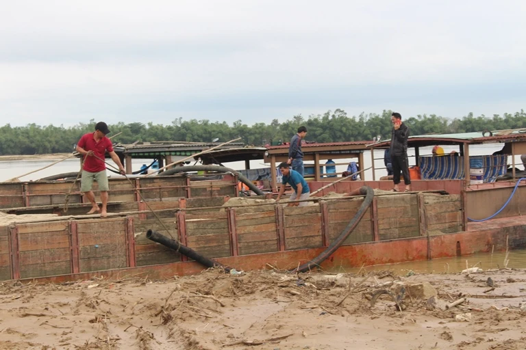 Các tàu hút cát trái phép trên sông Thu Bồn.