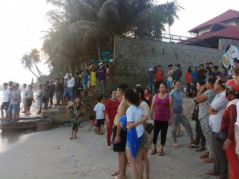 Người dân lo lắng theo dõi lực lượng cứu hộ tại vùng biển Bình Thuận khi du khách bị sóng cuốn gần đây. Ảnh: P.NAM