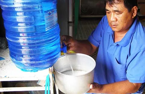 Do nguồn nước ô nhiễm, hộ ông Võ Thanh Hùng (xã Vĩnh Lộc A, huyện Bình Chánh) chuyển sang dùng nước đóng bình để nấu cơm. Ảnh: TRẦN NGỌC