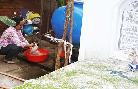 Từ lâu, gia đình bà Kiên Thị Hoàng (xã Trung Chánh, huyện Hóc Môn) phải sử dụng nước giếng khoan ngay cạnh mồ mả cho sinh hoạt hằng ngày. Ảnh: TRẦN NGỌC