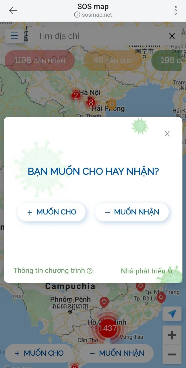 Hiểu được sự khó khăn của người dân trong mùa dịch này, SOSmap.net-Bản đồ cứu trợ-đã được ra đời nhằm kết nối thông tin giữa người cần được hỗ trợ và người muốn chia sẻ