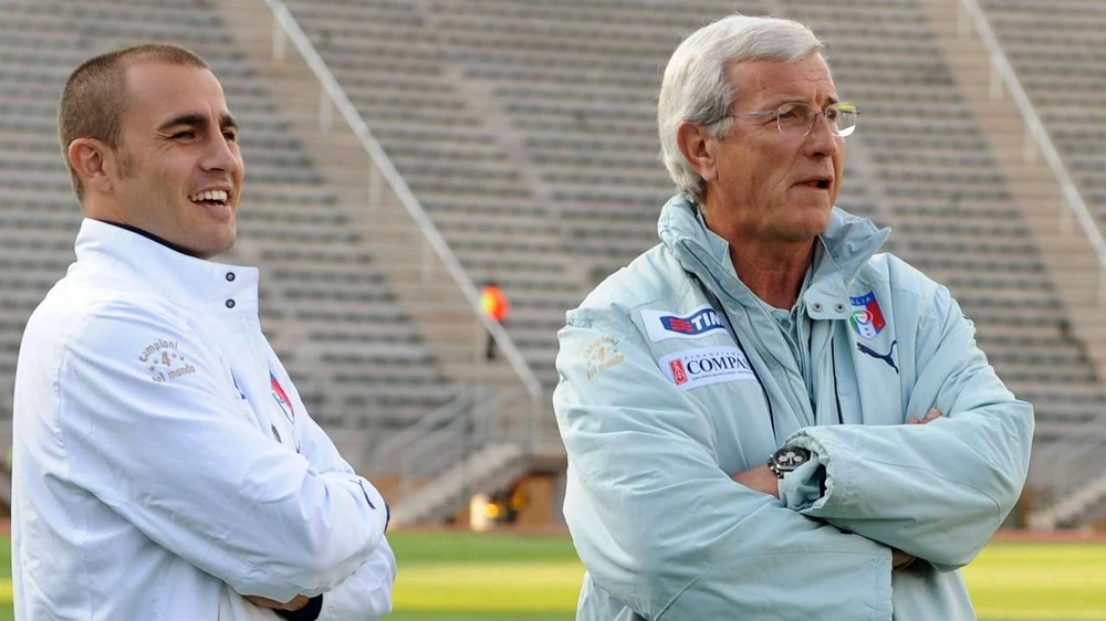 Bộ đôi huyền thoại vô địch World Cup 2006- M.Lippi và Cannavaro (trái)