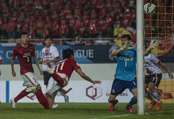 Đội Guangzhou (áo đỏ) của Cannavaro trong trận thắng FC Seoul.