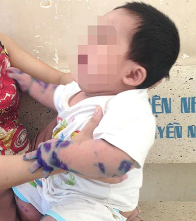 Bệnh nhi TBL (10 tháng tuổi, Đồng Nai) vừa nhập vào khoa Nhiễm BV Nhi đồng 2 với TCM nổi đầy bóng nước. Mẹ bé cho biết cách đây ba ngày bé sốt, khóc bứt rứt nên chị đưa đến BV Nhi đồng tỉnh Đồng Nai khám, bác sĩ nói bé mắc TCM độ một và cho thuốc về nhà uống nhưng không đỡ nên gia đình đưa vào BV Nhi đồng 2 cho yên tâm. “Thấy nổi bóng nước là tôi nghi bé mắc TCM rồi. Nghe nói bị TCM rất dễ vào sốc, tử vong nên tôi lo lắm” - mẹ bé L. nói. Cũng theo lời chị, bé vẫn thường hay cầm nắm, ngậm các đồ chơi, lâu lâu chị mới rửa đồ chơi cho con bằng nước chứ không dùng xà phòng.