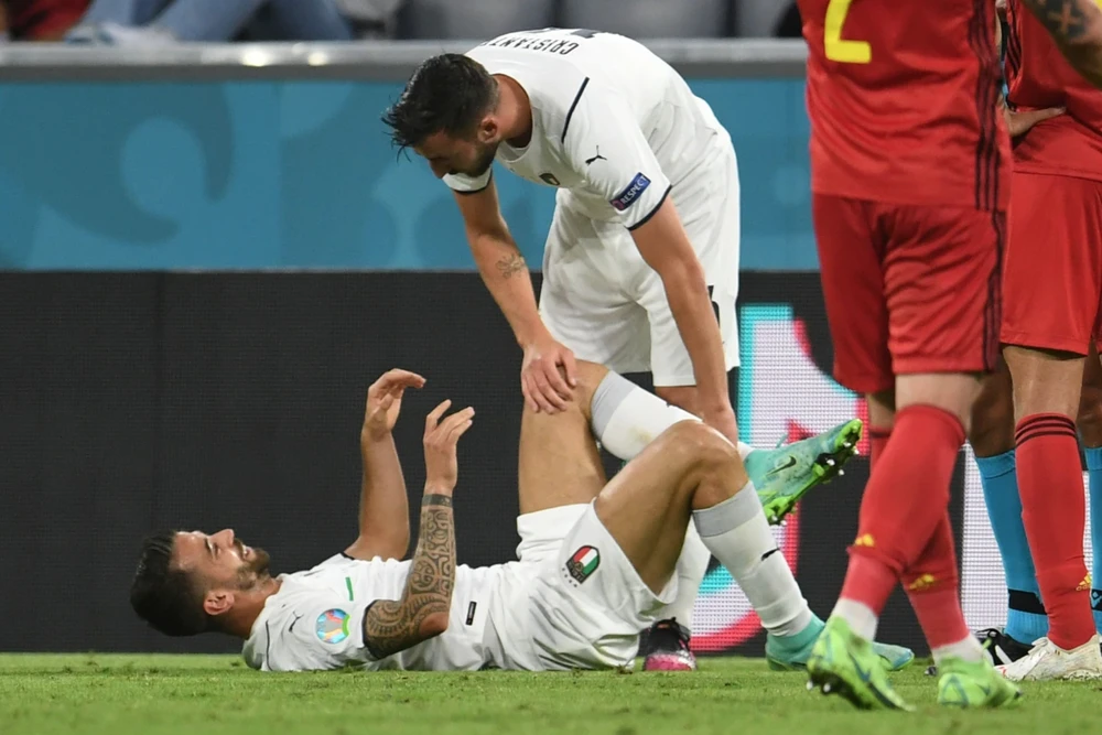Spinazzola tiếp tục chơi hay ở trận gặp Bỉ. Nhưng số phận lại buộc anh rời sân trong những giọt nước mắt. Cú tăng tốc định mệnh đã khiến gót Achilles của Spinazzola rách thê thảm.