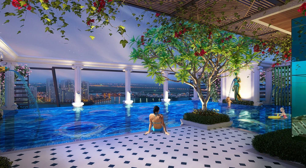 Gia chủ có cơ hội ngắm nhìn khung cảnh đẹp nhất hướng ra sông Sài Gòn và trung tâm thành phố từ khu vực hồ bơi vô cực đặt trên đỉnh tòa cao ốc. Ảnh:DXG
