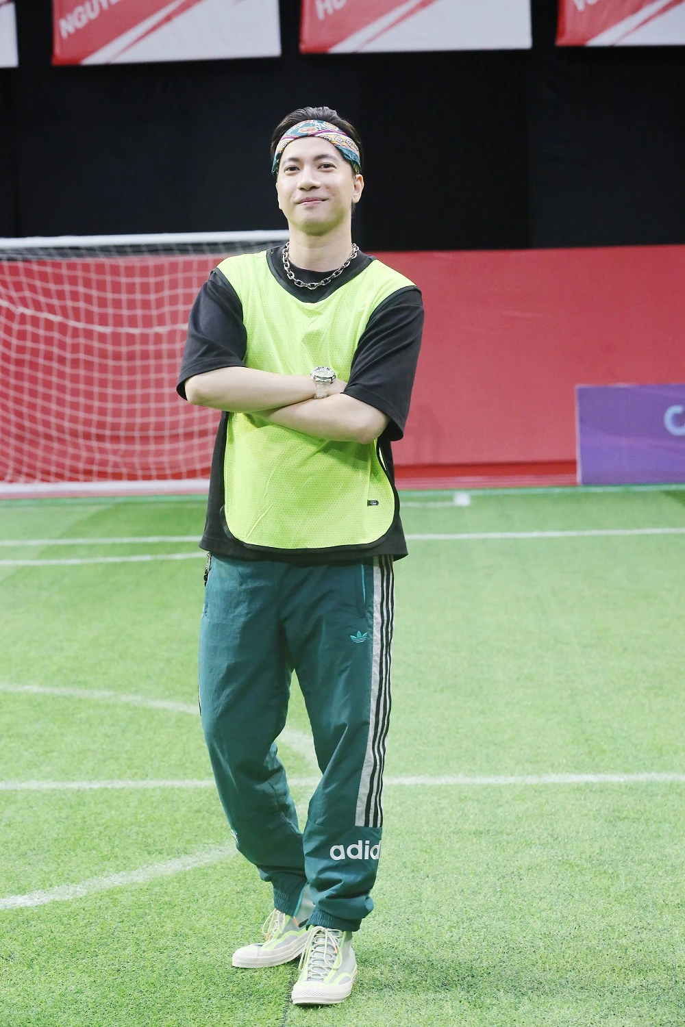 ST Sơn Thạch chấp nhận bỏ hình tượng đứng đắn thường ngày để ngồi dáng “con cóc” để hướng dẫn các đồng đội.