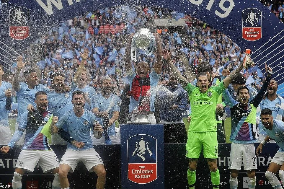 Man City đăng quang cả ba giải quốc nội Premier League, FA Cup và League Cup.