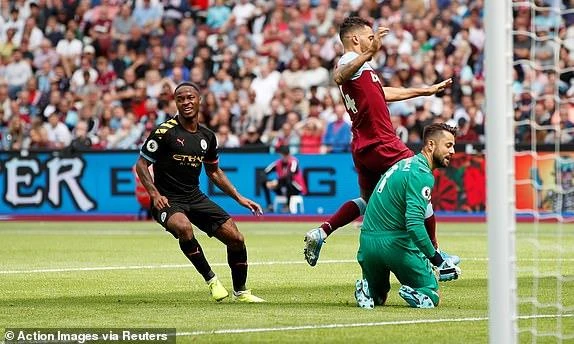 Trên chấm 11 m, Aguero dễ dàng đánh lừa thủ môn của West Ham để có cho mình bàn thắng đầu tiên ở mùa giải mới. Phút bù giờ đầu tiên của trận đấu, tiền đạo người Anh Sterling dễ dàng có được hat trick khi lạnh lùng dứt điểm đưa bóng vào góc hẹp ấn định tỉ số 5-0 cho Man. City.