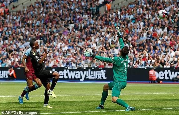 Sterling bấm bóng qua đầu thủ môn West Ham, nâng tỉ số lên 3-0.