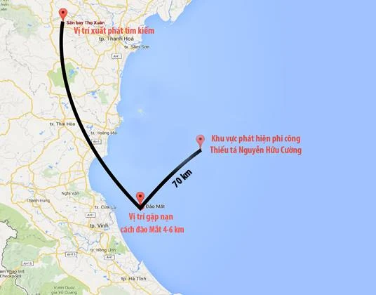 Cũng theo Thượng tướng Tuấn, hiện việc tìm kiếm tiếp tục được mở rộng ra hai bên toạ độ 19,4 độ vĩ Bắc - 106,28 độ kinh Đông. Đây là tọa độ mà tàu cá đã phát hiện và cứu được phi phi công Cường vào rạng sáng nay.