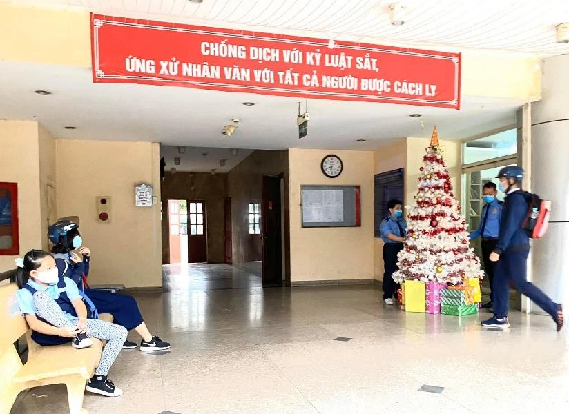 Tinh thần chống dịch COVID-19 thể hiện rõ trên khẩu hiệu treo tại một chung cư ở quận Tân Phú, TP.HCM. Ảnh chụp sáng 7-12. Ảnh: NGÔ BÌNH