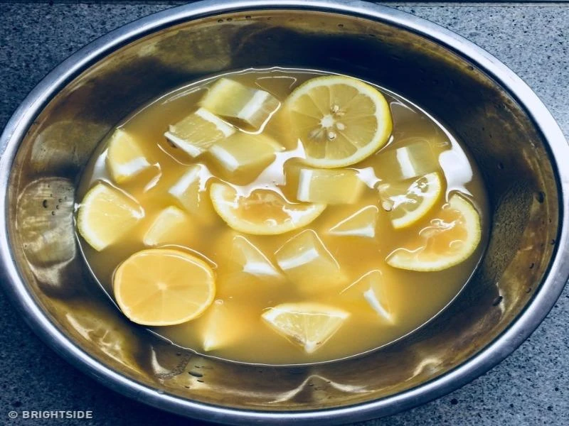 Trộn nước cốt chanh tươi, dầu dừa nguyên chất và dùng bông chấm bôi vào các vùng da cần làm sáng. Sau ba phút, rửa sạch mặt bằng nước ấm và thoa kem dưỡng ẩm. Ngoài ra, có thể kết hợp nước cốt chanh với dầu hạnh nhân để giảm nám đen và duy trì làn da khỏe mạnh. Không dùng nước chanh nếu da chuyển sang màu đỏ và ngứa.