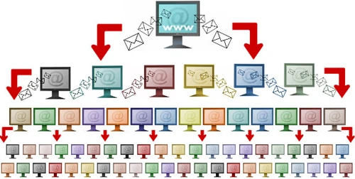 Thuật ngữ “tiếp thị lan truyền” (viral marketing) ra đời từ khi dịch vụ thư điện tử Hotmail quảng cáo cho sự xuất hiện của mình bằng chính email mà khách hàng của Hotmail gửi đi. Ý tưởng ở đây là khi một người nhận được email quảng cáo, người đó sẽ trở thành “khách hàng” (người sử dụng hoặc người ủng hộ) và tiếp tục lây lan sang những người chung quanh. Nếu lấy tỷ lệ một người nhận email truyền cho hai người trở lên, thì số lượng người trở thành “khách hàng” sẽ tăng lên rất nhanh.