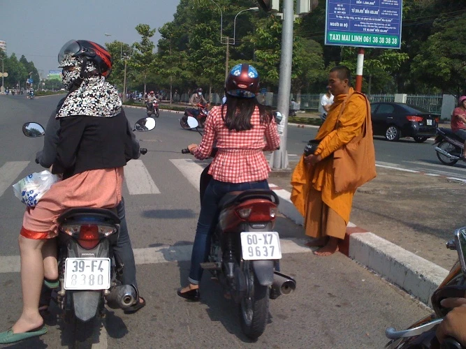 Trong khi đó, một vị “sư trẻ” khác đứng khất thực tại ngã tư Vườn Mít (đường Phạm Văn Thuận, P.Trung Dũng, TP Biên Hòa). “Sư trẻ” này dáng dấp khá khắc khổ, lúc nào mắt cũng nhắm nghiền, miệng lẩm bẩm như đang đọc kinh để thu hút mọi ánh nhìn thương cảm của người đi đường khi dừng chờ đèn đỏ. “Sư trẻ” đứng đầu trần, chân đất giang nắng từ 7 giờ sáng đến 11 giờ trưa, rồi sau đó lủi thủi đi vào một con hẻm nhỏ sát bên trụ sở Trung tâm Viễn Thông Đồng Nai “biến” mất dạng.