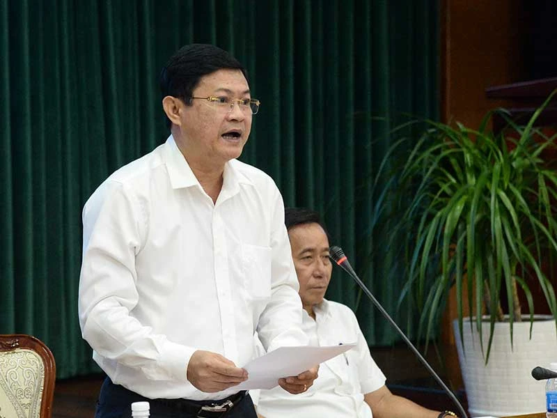 Phó Chủ tịch UBND TP.HCM Huỳnh Cách Mạng đang phát biểu ý kiến tại hội nghị. Ảnh: TÁ LÂM