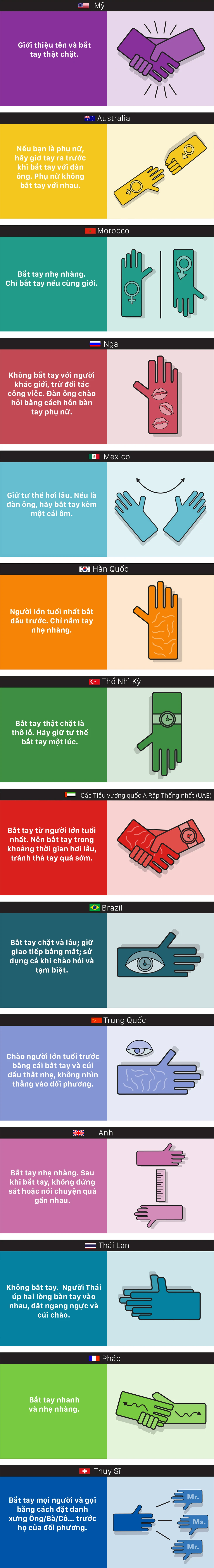 Tại Australia, phụ nữ không bắt tay nhau nhưng tại Morocco, người dân chỉ bắt tay nếu cùng giới.