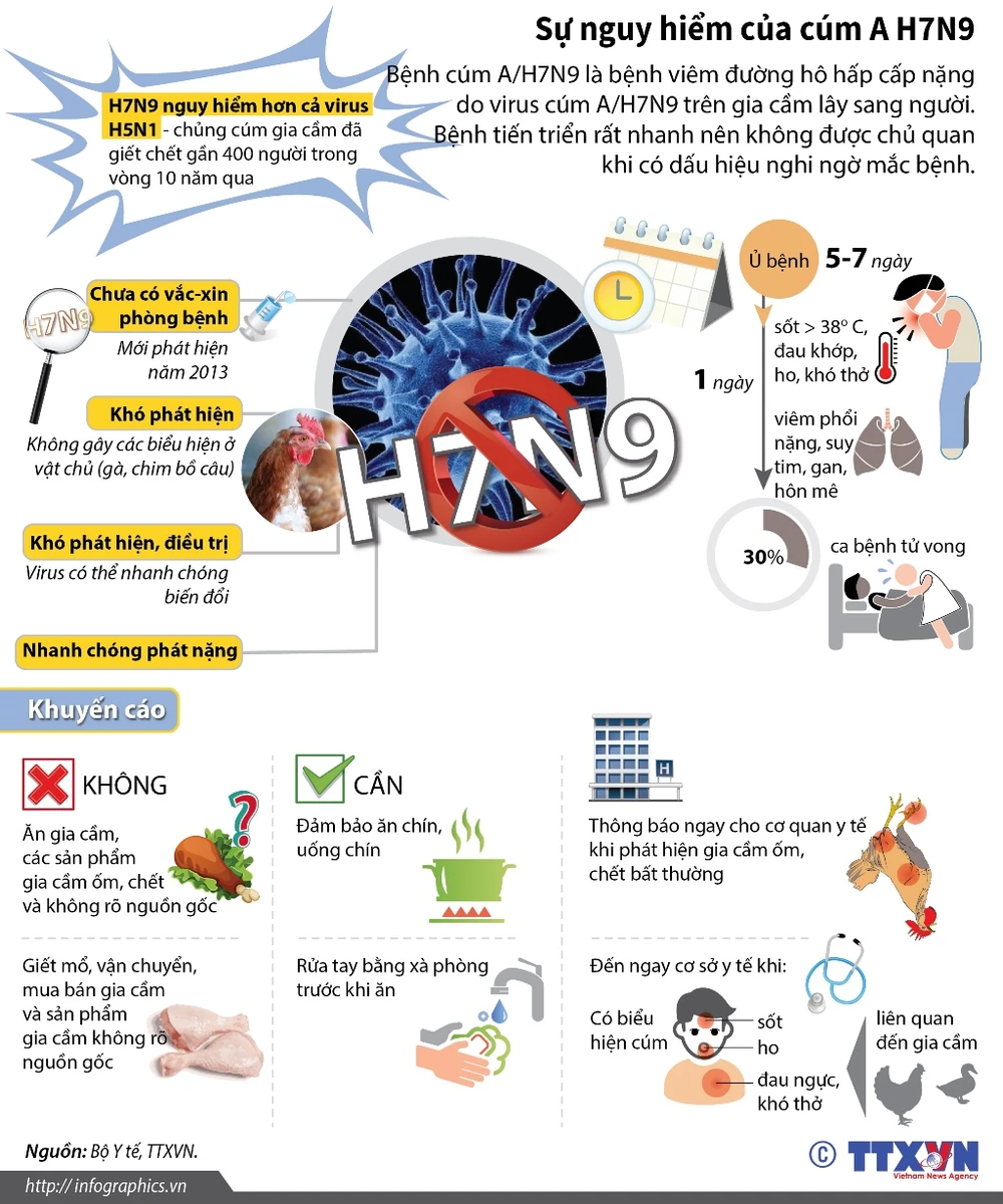 Bệnh cúm A/H7N9 là bệnh viêm đường hô hấp cấp nặng do virus cúm A/H7N9 trên gia cầm lây sang người. Bệnh tiến triển rất nhanh nên không được chủ quan khi có dấu hiệu nghi ngờ mắc bệnh.