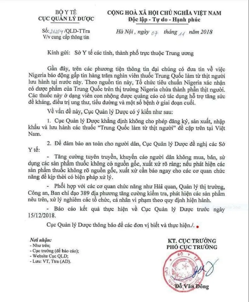 Phó cục trưởng Cục Quản lý dược xác nhận "thuốc làm từ thịt người" là làm từ nhau thai.