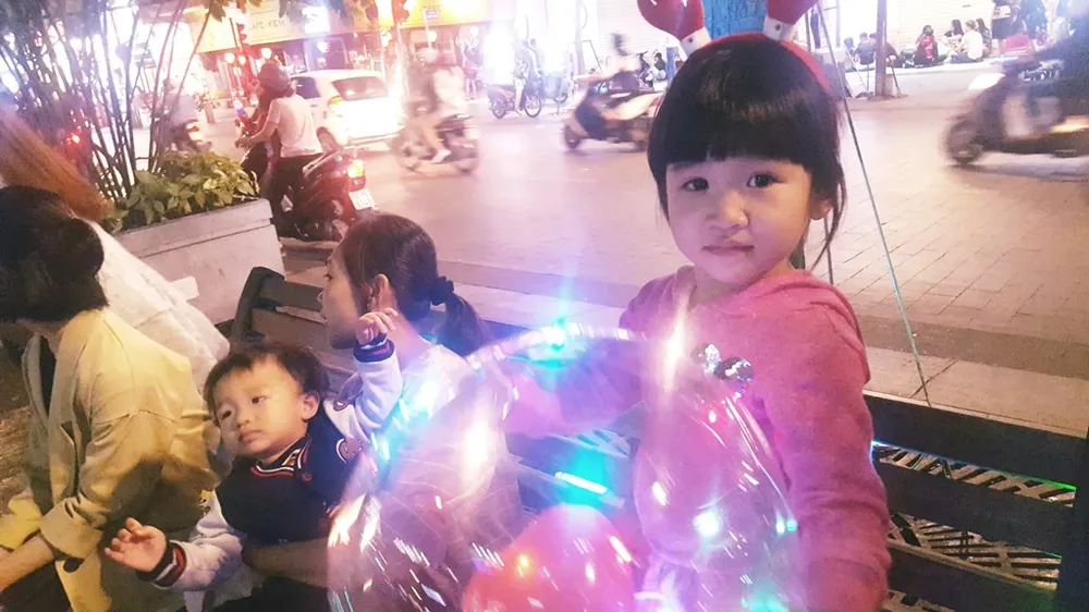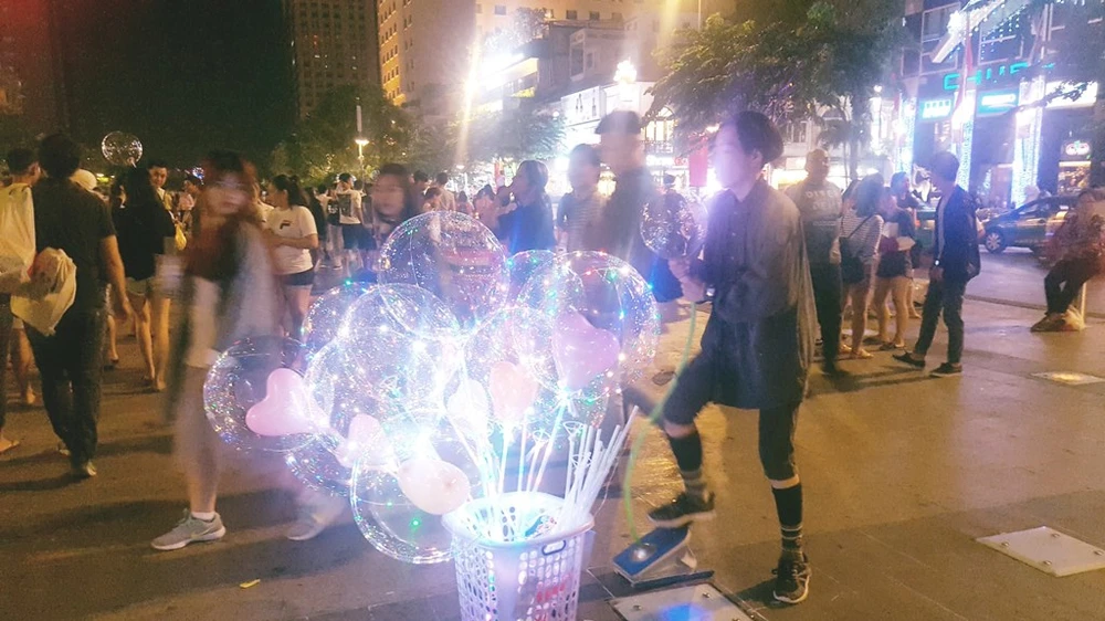 Ghi nhận vào đêm 18-12, tại phố đi bộ Nguyễn Huệ có hàng chục điểm bán bóng galaxy. Trẻ em nào đi ngang người bán cũng nằn nì cha mẹ mua cho mình. Người viết chứng kiến một cặp vợ chồng trẻ đang tranh luận về việc có mua bóng hay không, cạnh đó là một bé gái đang nức nở. Người mẹ kiên quyết không chịu mua vì "nghe nói đã có nhiều trường hợp bị phỏng vì bóng bay phát nổ", trong khi người cha lại cho rằng: “Làm sao mà nổ được, cái cục pin tiểu không đủ sức để nổ, người ta vẫn chơi đầy có bị sao đâu”. Cuối cùng vì chiều con, người mẹ đành tặc lưỡi bỏ ra 90.000 đồng...