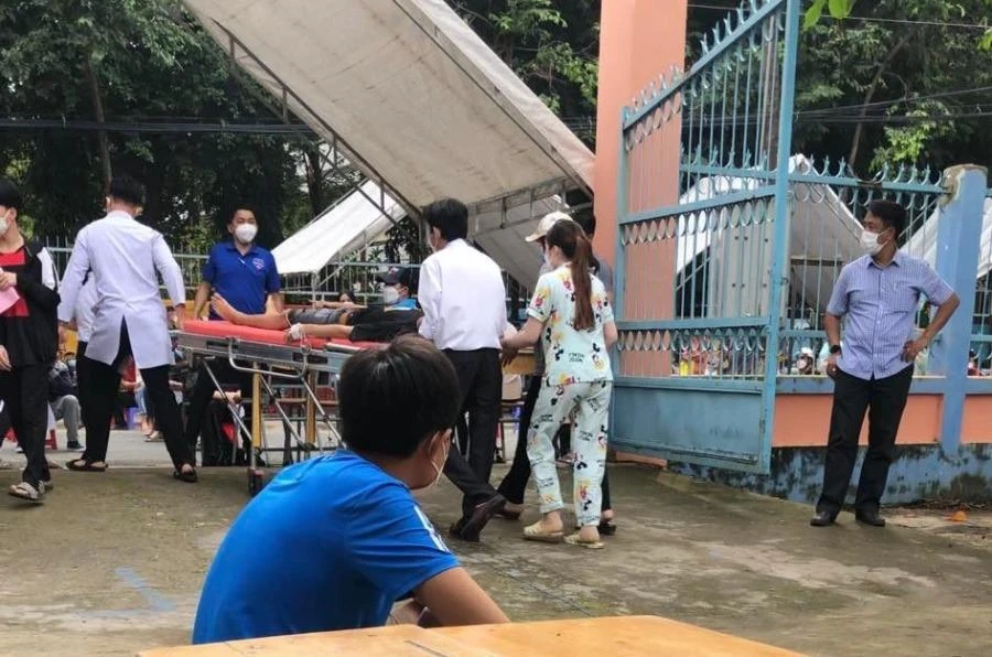 Trước đó, nhiều người dân thấy nhân viên y tế lấy băng ca khiêng một nam thanh niên đi cấp cứu. Một số người dân cho rằng người này bị sốc vaccine nên rất lo lắng.