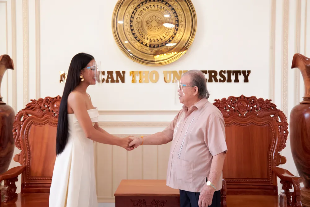 Cụ thể, cô đã có buổi gặp gỡ và trò chuyện thân mật cùng Tiến sĩ Nguyễn Văn Quang - Hiệu trưởng trường Đại học Nam Cần Thơ.