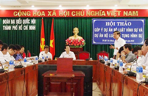 Hội thảo góp ý dự án BLHS (sửa đổi) do Đoàn đại biểu Quốc hội TP.HCM tổ chức ngày 20-4. Ảnh: P.LOAN