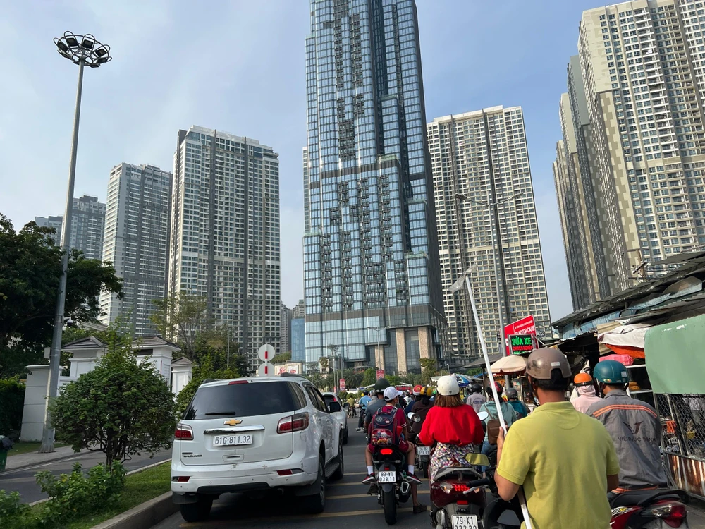 Ùn ứ đường vào khu dân cư Vinhomes Central Park. Ảnh: ĐT |