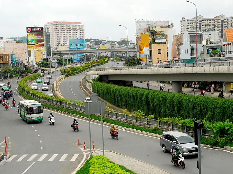 Đường Nguyễn Hữu Cảnh nhìn từ trên cao. (Ảnh chụp ngày 12-9)Ảnh: HTD