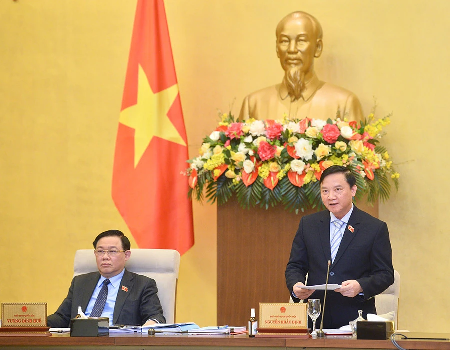 Phó Chủ tịch Quốc hội Nguyễn Khắc Định điều hành nội dung làm việc.