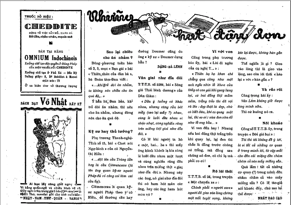 Mục “Những hạt đậu dọn” của Phong hóa số 125, ra ngày 23-11-1934. Ảnh: Đ.B.